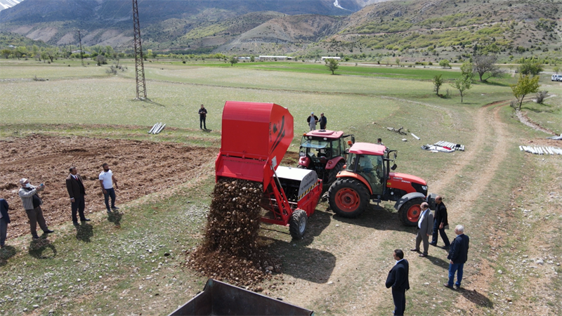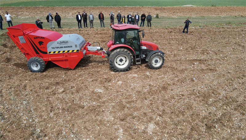 İl Müdürlüğümüz ve Erzincan Ziraat Odasının birlikte yürüttüğü "Erzincan Tarım Makinaları Parkı Projesi" DAP Bölge Kalkınma İdaresi Başkanlığından aldığı destekle; 2 Adet Taş toplama makinasının ilimize tahsisi gerçekleştirilmiştir. Makinenin denemesinde konuşan İl Müdürümüz Murat Şahin; "Ekilemeyen tarım arazilerinin taşlardan temizlenip verimli bir hâle getirilerek üretime ve ekonomiye kazandırılması amacıyla Tatlısu köyünde 30 dekar alana çilek ekimi yapacak olan vatandaşımızın tarlasında makinamızın denemesine başladık, inşallah Erzincan genelinde ekilemeyen taşlı arazi sayısını minumum düzeye indirerek bölge tarımına katkı sağlayacağız tekrardan İlimize hayırlı ve uğurlu olmasını temenni ediyorum.